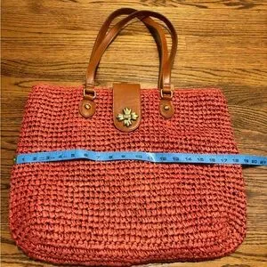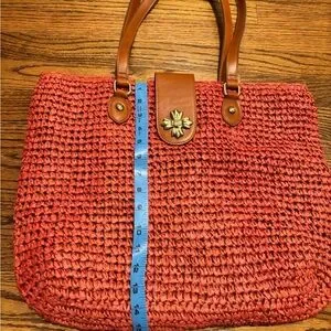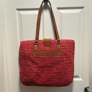 Patricia Nash | Manarola Raffia Tote Specialty Woven Straw Pink Brown Leather