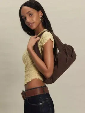 The perfect everyday bag with a laid-back feel, this slouchy shoulder style is featured in a soft suede fabrication and east-to-west silhouette with knotted strap detailing for a cool, lived-in finish.