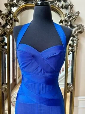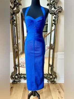 Fashion Nova Cobalt Blue Halter Midi Bandage Dress Size M