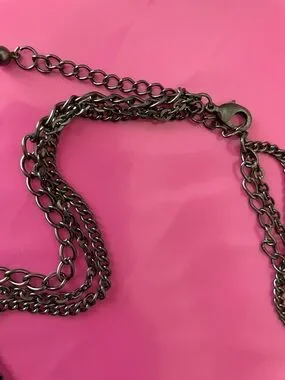 Anna Sui necklace w triple strand chain & an ornate pendant w rhinestones