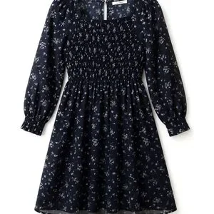 Description – Chic Navy dress with floral design. Features long sleeves and a flattering fit. Ideal for versatile styling.