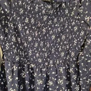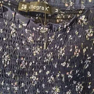 NWOT Size Medium Allegra K Navy Floral Long Sleeve Smocked Mini Dress