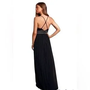 Lulus Glamorous Gala Black Embroidered Maxi Dress Pleated Skirt Black Size XS