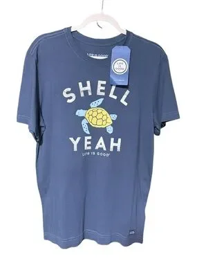 Life Is Good Men's "Shell Yeah" Short Sleeve Crusher Tee in Darkest Blue