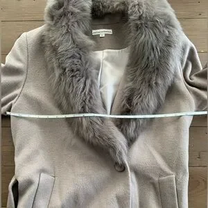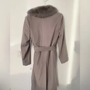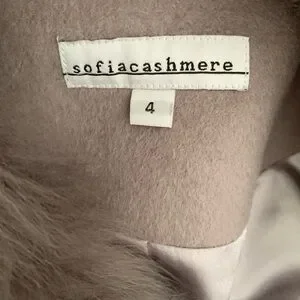 Sofia Cashmere wool real lamb shearling fur trim coat NWT