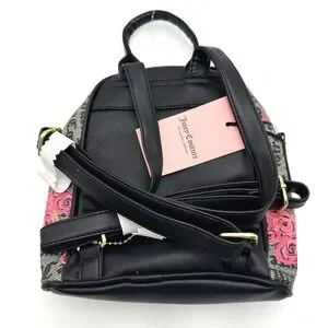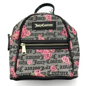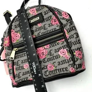 Keywords: Juicy Couture backpack, mini backpack, rose print, logo print, gold hardware, crossbody strap, designer, fashion, cute, girly, travel, school, day trip, evening bag. retro, schoolgirl, 90s, y2k, rocker, feminine, party, preppy