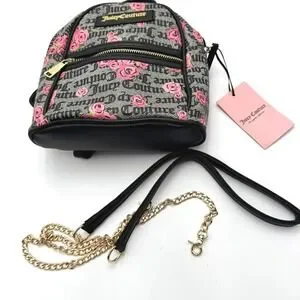 JUICY COUTURE NWT Rose Logo Mini Backpack Black Pink Gold Chain Crossbody Y2k