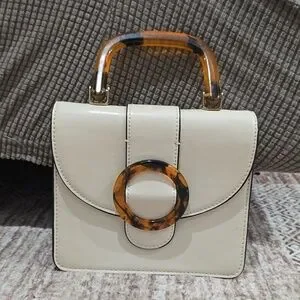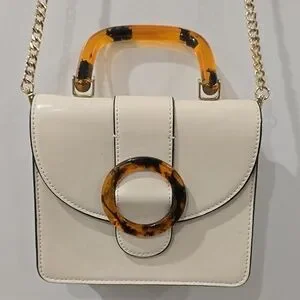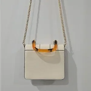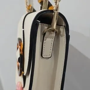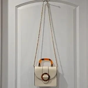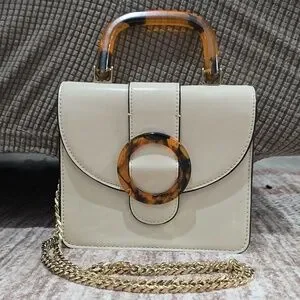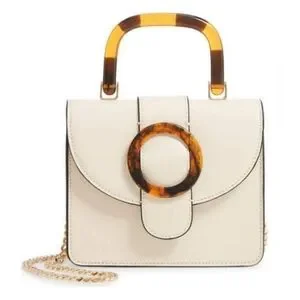 TOPSHOP Capri Buckle Crossbody Bag in Beige, Tortoise Shell Details, Gold Chain