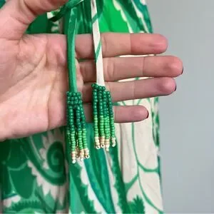 Adjustable cut out details at waist with beaded tassel ties