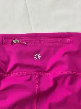 Bright and performance-ready, these Athleta athletic leggings feature a vibrant fuchsia color with a stylish ankle punch-hole cutout design. Built with stretch and comfort in mindโperfect for workouts, yoga, or everyday athleisure wear.