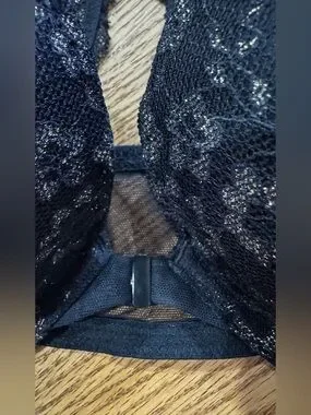 Victoria's Secret Black Lace Racerback Push-Up Bra with Subtle Shimmer