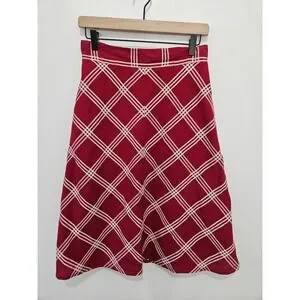 eShakti Red White Plaid A-Line Midi Skirt with Pockets Size 8 Medium Cotton