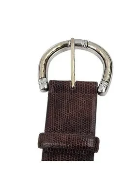 Elevate your style with this Chicos belt featuring a brown lizard pattern and polished silvertone buckle. Perfect for adding a western flair to any outfit, this belt is both stylish and versatile.