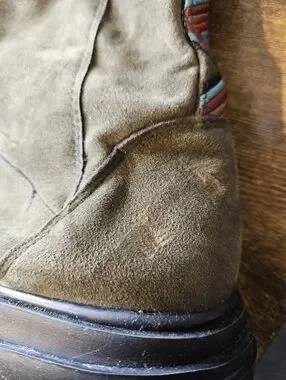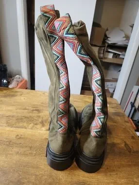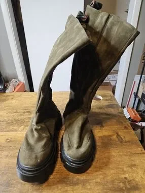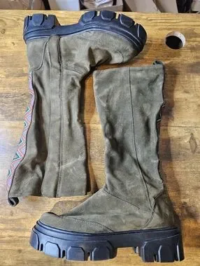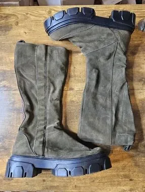 Farm Rio Women's US 7 EU 38 Knee High Olive Green Army Faux Suede Boots SCUFF