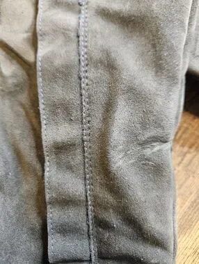 There is a scuff on one heel and some scratches, scuffs on sides. See pictures.