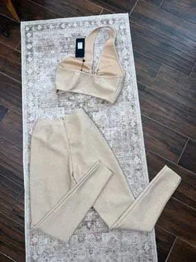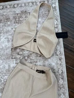 Fashion nova Beige Ribbed Knit Halter Top & Pants Set