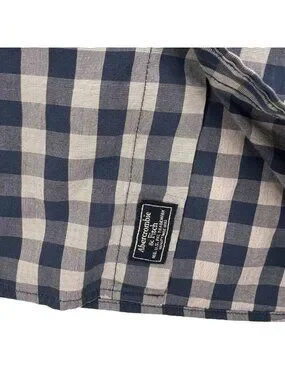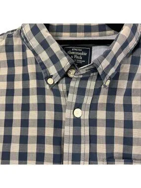Abercrombie & Fitch Blue White Gingham Shirt Check Button Up Stretch M Mens