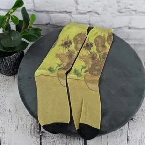 Green yellow color Van Gogh sunflowers in a vase novelty fancy whimsical socks