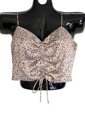 Forever 21 Beige Spotted Satin Ruched Cami Top