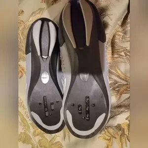 Sleek Forte cycling shoes with trihook closure. Black and gray color scheme. new in box. box shows some damage. Shoes in perfect condition. men's 10.5