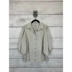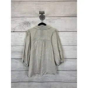 Chico's Women's Cream Linen Button Front Blouse Size 8