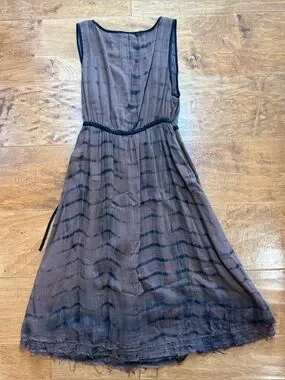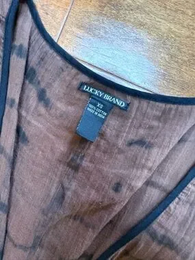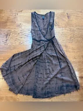 Lucky Brand Y2K Brown Tie Dye Wrap Midi Dress Raw Hem Boho
