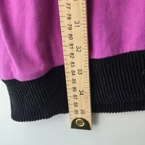 Nightmare Before Christmas sleep shirt in Radiant Orchid features a bold Scream Queen graphic of Sally on the front. This long-sleeve oversized pajama top is designed with a comfortable crew neck and contrasting black ribbed cuffs and hem. The soft, stretchy fabric blend ensures a cozy fit for lounging or sleeping, while the interior neckline is detailed with a decorative Jack Skellington print.
