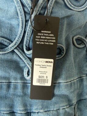 Super flattering and statement-making denim jumpsuit from Fashion Nova. Great for festivals or country concerts. Bustier top does have padding on top.