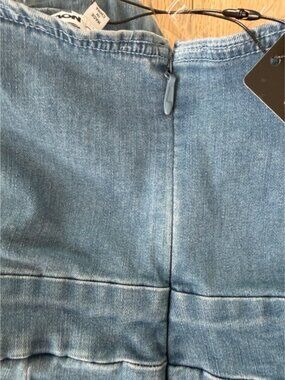 Fashion Nova Feeling Twirly Denim Jumpsuit Medium Wash Small Strapless Wide Leg