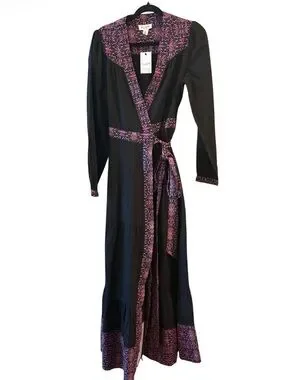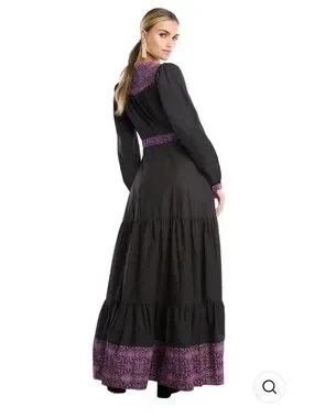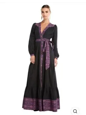 Allison New York Madison Full Wrap Black & Purple Maxi Dress Size Medium