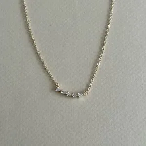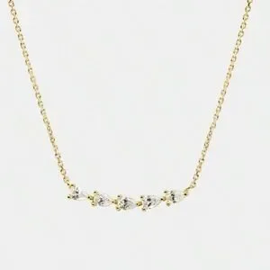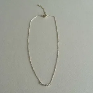 This elegant necklace features a delicate gold chain adorned with sparkling silver accents. Perfect for adding a touch of sophistication to any outfit.