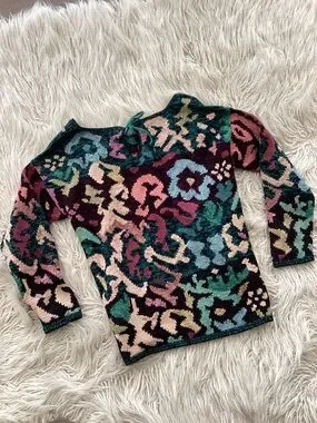 Multicolor Floral abstract PERUVIAN CONNECTION Women's Sweater L