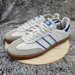 Adidas Samba Flat White Lucid Blue Shoes Men's Size 9.5