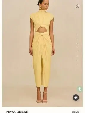 cult gaia Pale Yellow Knot Front Midi Dress