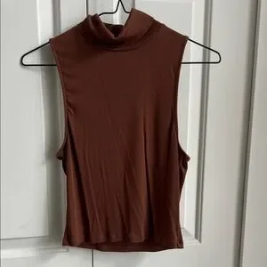 Sleeveless Mock Neck Top in Chocolate Brown