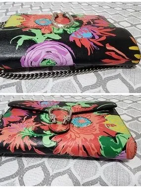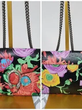 This authentic Gucci x George Kenneth Scott Dionysus Dionysus Wallet On Chain Multicolor is in its good pre-owned condition. The exterior is clean and beautiful. The interior is clean. Silver hardware.