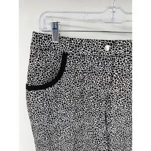 Weekends by Chicos Women 0 Black White Animal Print Capri Pants Stretch Summer