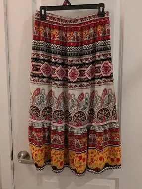 Christian Siriano Boho Elastic Waist Maxi Skirt. Approximately 14" elastic waist. Approximately 30" long.