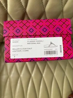 Signature Tory Burch cutout logo on leather thong straps. Cushioned footbed with slight wedge for all-day wear. Versatile brown tone that pairs with many outfits. Size 7 - Gently worn a few times.