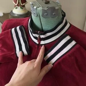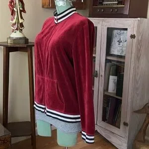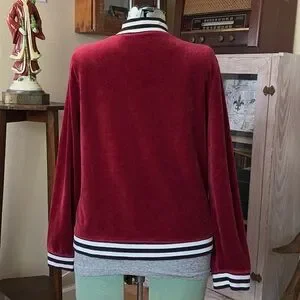 Red Velvet Velour Track Jacket Y2K Emo Soft Grunge Zip Up Striped Collar retro