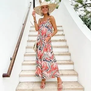 From a ruffled elasticized neckline to wide legs, this flowy jumpsuit is chic and easy perfection for every day.