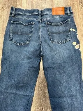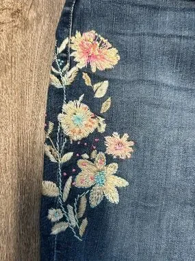 Lucky Brand Dark Blue Straight-Leg Jeans with Floral Embroidery