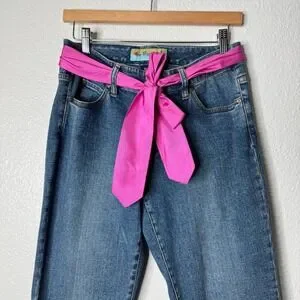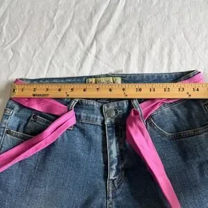 Too She She Y2K Cropped Jeans Pink Silk Belt Rhinestone Buckle Womens 6 Blue