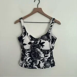 Lululemon Bra Top Tank Black White Floral Stretch Training Women’s size 8 EUC
