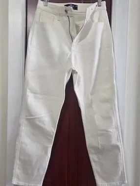 Clean white high-rise jeans with a modern straight leg. Comfortable stretch denim for everyday wear. Classic five-pocket design and zip fly for easy styling. Pairs seamlessly with casual tops and sneakers.