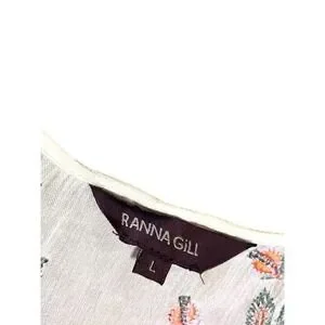 Ranna Gill Anthropologie Floral Embroidered V-Neck Blouse Bohemian Cream Large