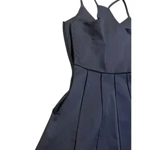Parker Black Fit and Flare Mini Dress V-Neck Racerback Ladder Stitch XS