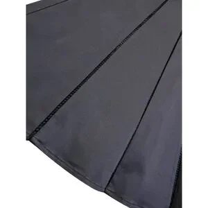 Parker New York fit and flare mini dress in a classic black hue. This elegant piece features a V-neckline with delicate spaghetti straps that lead to a stylish racerback design. The skirt is detailed with vertical ladder stitch inserts that add a touch of texture and visual interest to the structured silhouette. Crafted from a comfortable rayon and cotton blend with a hint of stretch, it offers both a flattering fit and a sophisticated look for cocktail parties or evening events. Finished with a concealed side zipper for a seamless appearance.