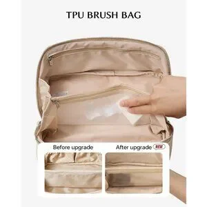 Quality Materials: Crafted from smooth, waterproof PU leather that’s easy to clean, with a durable polyester lining. The makeup brush compartment is made from clear, waterproof TPU to keep brushes neatly stored and visible.