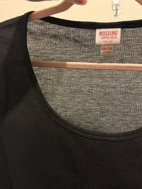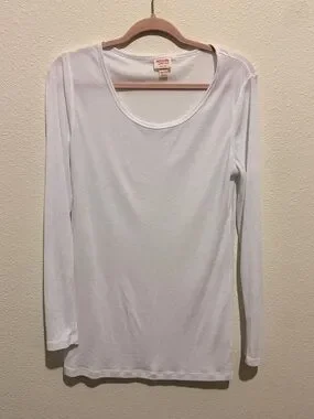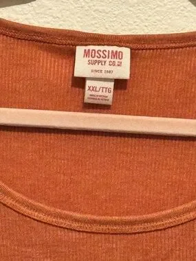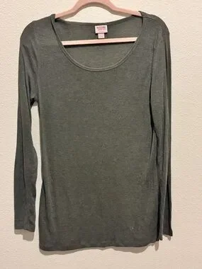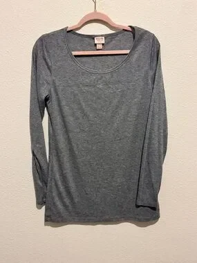Lightweight ribbed knit tee. Scoop neckline. Soft stretch fabric. Casual everyday top.